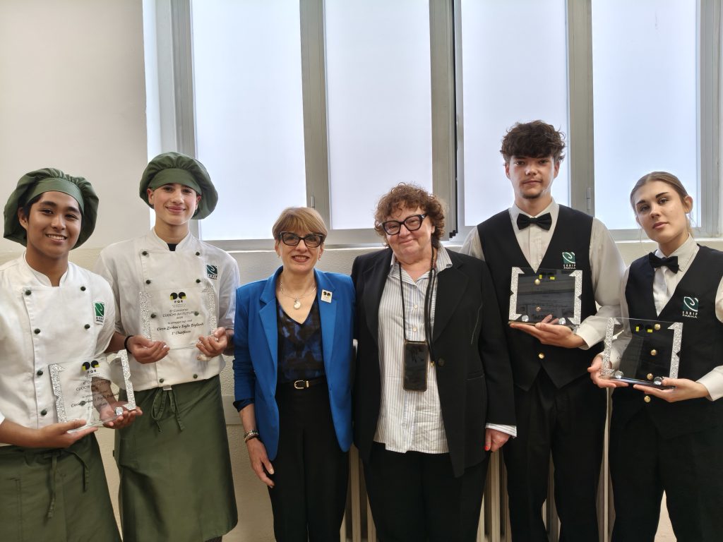 Per l’Istituto Motti hanno partecipato, per la cucina gli allievi Gabriele Pecchia e Alessandro Bragazzi con la ricetta Sinfonia Verdiana di primavera (primo piatto); mentre per la sala si sono presentati Andrea Di Gianni e Sharon Di Vico.
